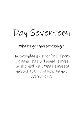 Day Seventeen What’s got you stressing? No, everyday isn’t perfect. There are days that will simply stress you the heck out. What stressed you out today and how did you overcome it?