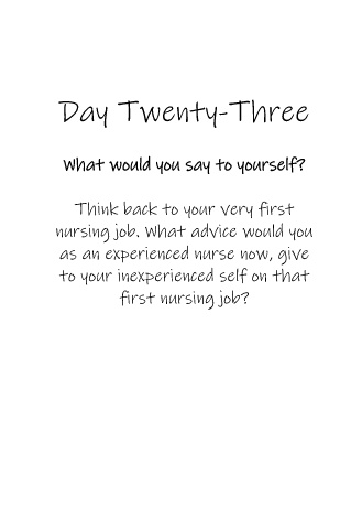 Day Twenty-Three What would you say to yourself? Think back to your very first nursing job. What advice would you as an experienced nurse now, give to your inexperienced self on that first nursing job?