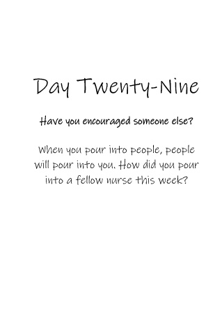 Day Twenty-Nine Have you encouraged someone else? When you pour into people, people will pour into you. How did you pour into a fellow nurse this week?
