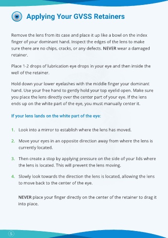 you place the lens directly over the center part of your eye. If the lens