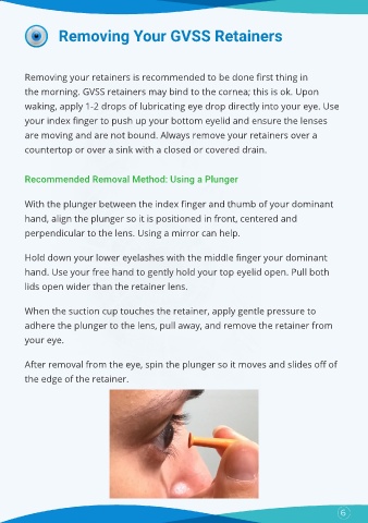 the morning. GVSS retainers may bind to the cornea; this is ok. Upon