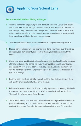 directly into the hole of the plunger as you place the Scleral Lens directly on the